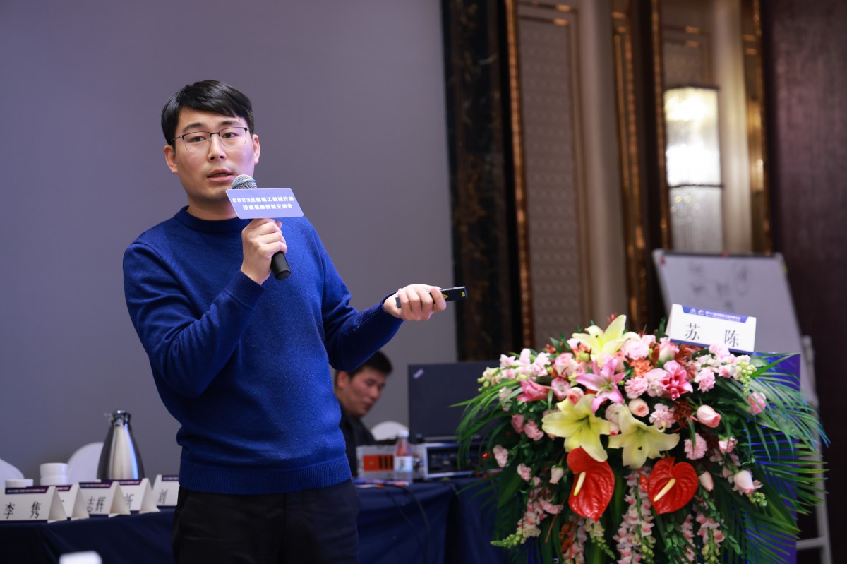 徐州徐工基础工程机械有限公司技术中心工法所所长苏陈作题目为《大直径超深桩施工工法及发展趋势》的报告