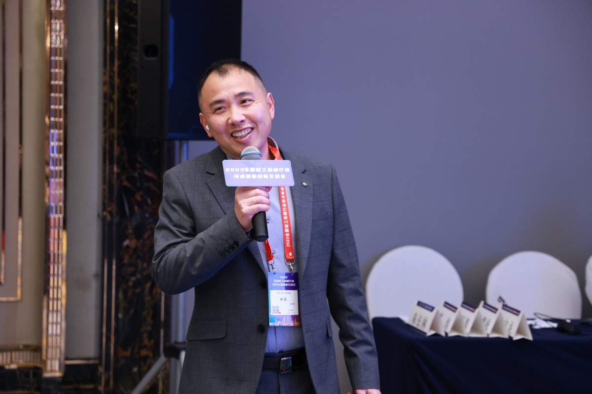 浙江赛克思液压有限公司营销总监林文龙作题目为《国产动力传动系统在桩工机械领域的应用》的报告