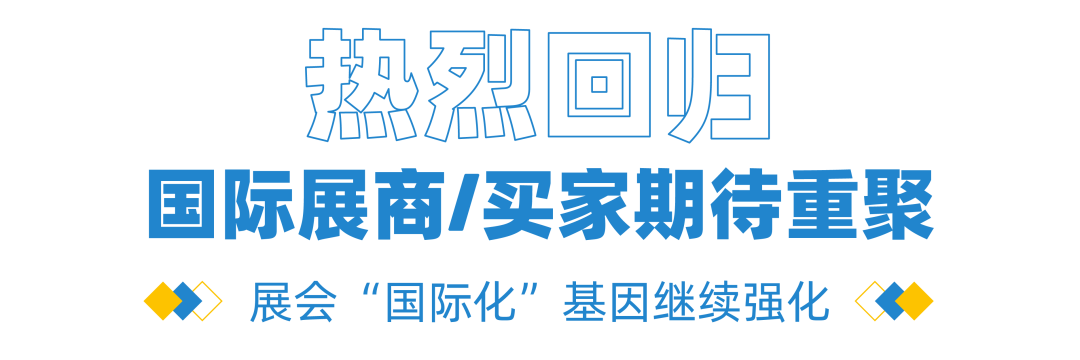 随着全球商贸交流重归正轨,市场需求亟待释放,国际展商、海外买家也翘首期待回归,展会“国际化”基因将继续强化!