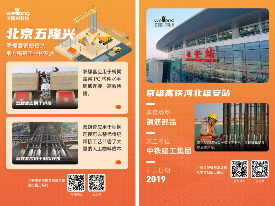 于钢筋模块化施工,解决了传统钢筋工程的痛点。WL双螺套已经应用在核电站、特大桥、隧道、 轨道交通、市政工程、高铁、PC建筑等众多工程领域,具有广阔的市场发展空间。