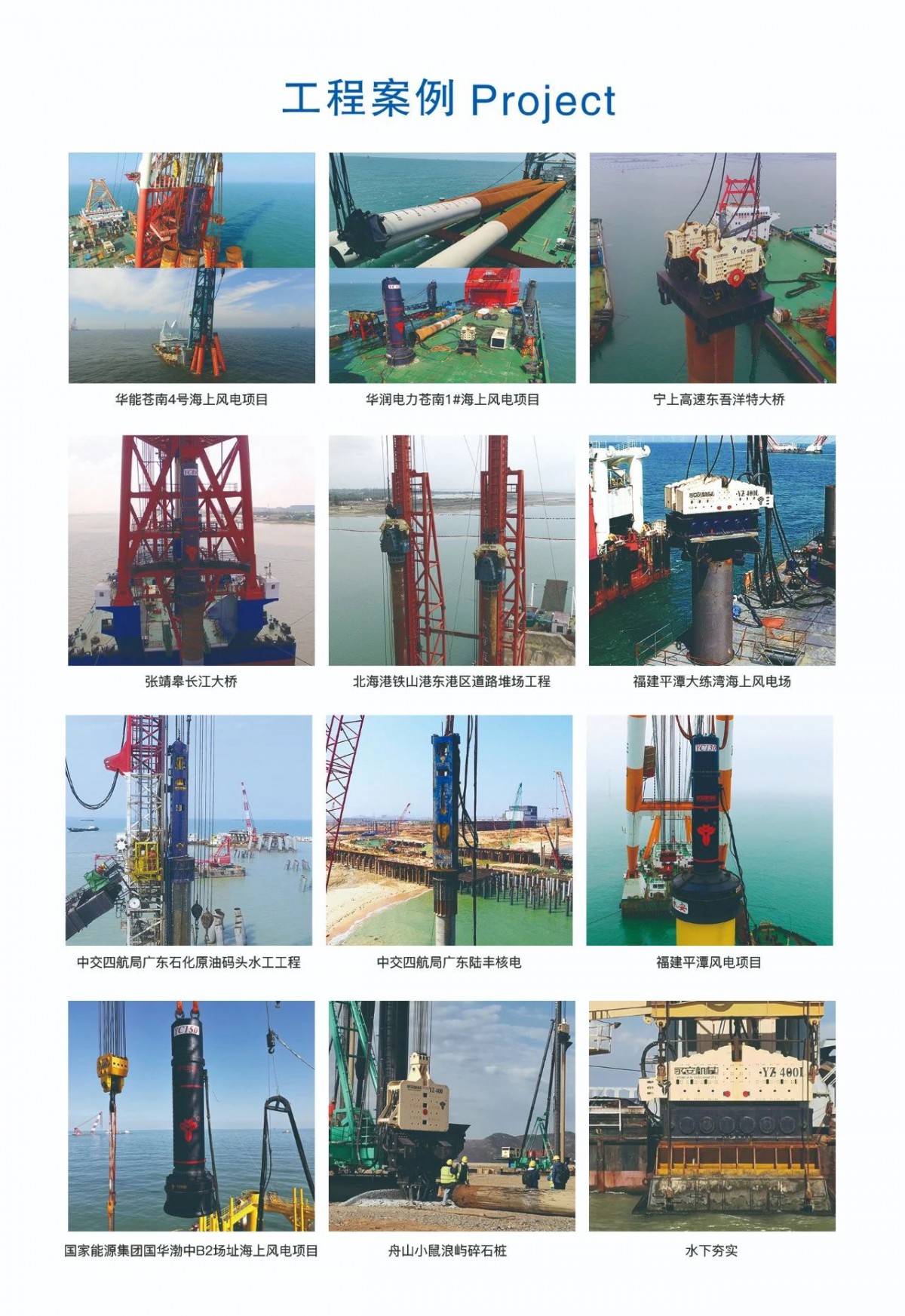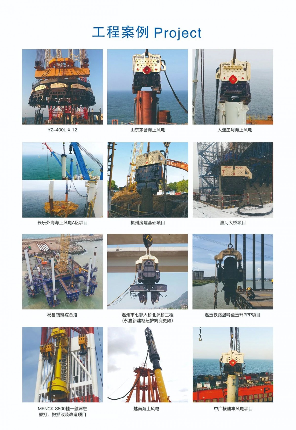 永安打桩锤广泛应用于码头、桥梁、栈桥、水运工程项目中施工,也可用于海上风电、房建桩基础打桩。永安振动打桩锤打桩效率高,操作简单,故障率低,同时还提供专业的售后服务。其中液压振动锤由YZ-90D到YZ-800BX2有30多款产品;液压冲击锤由YC-3到YC-220有30多款产品;电动振动锤由DZ-45到DZJ-600有20多款产品,翻桩器FZQ-100到FZQ-1200有10多款产品。