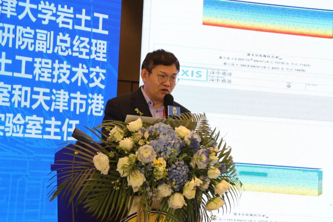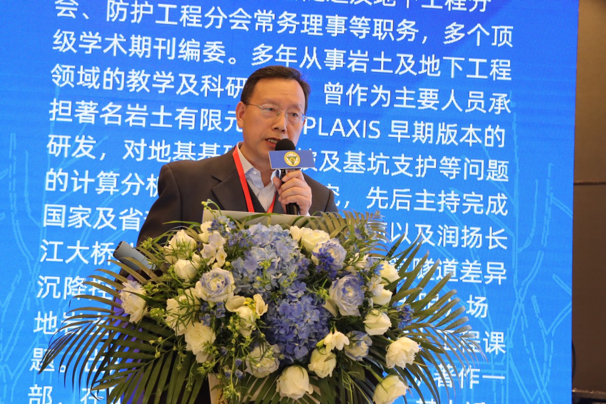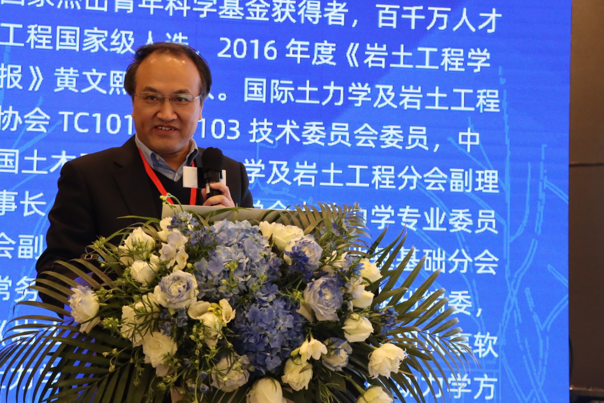 软土工程专业委员会主任委员、同济大学教授黄茂松作题目为《软土小应变本构模拟与精细化试验及工程应用》的报告