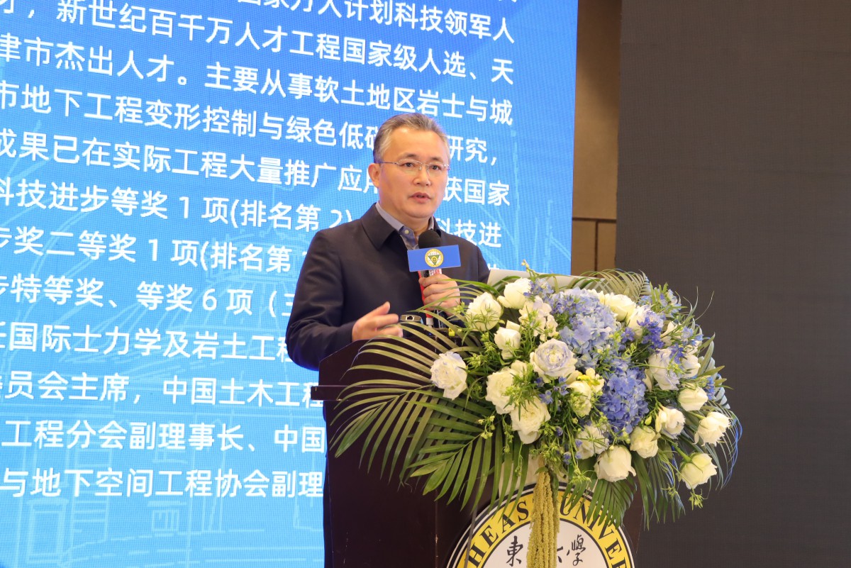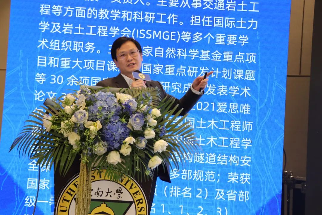 会议在东南大学教授刘松玉主持下拉开帷幕,东南大学吴刚、土力学及岩土工程分会理事长张建民分别致开幕辞。