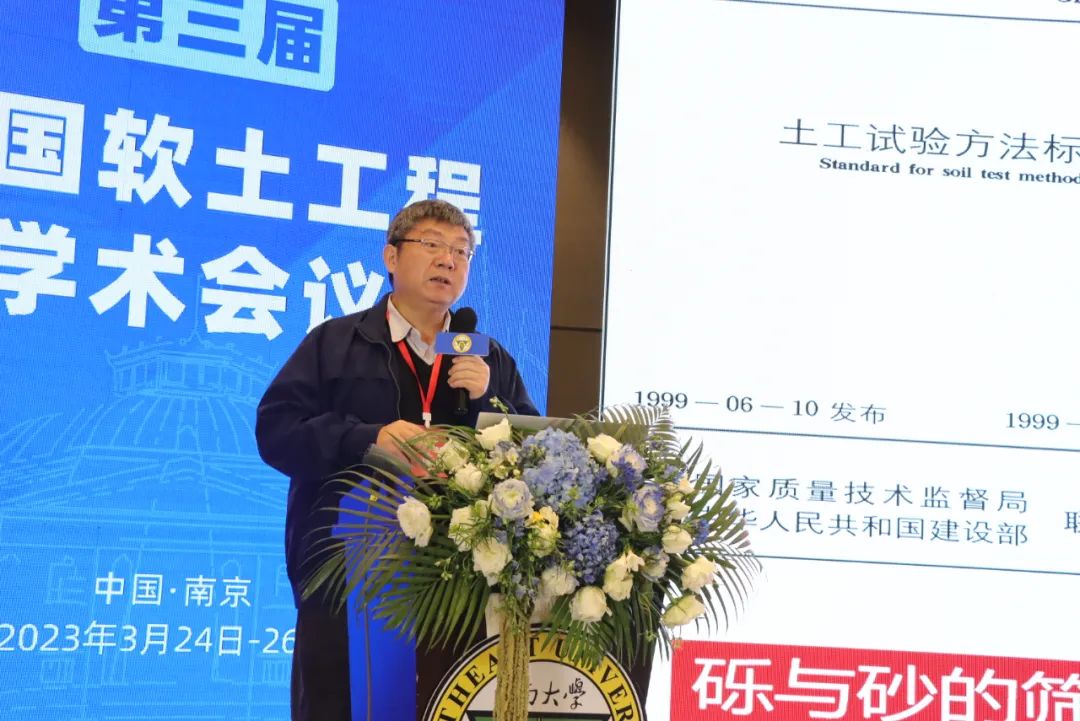 东南大学教授刘松玉作题目为《软弱土 CPTU 原位测试研究新进展》的报告