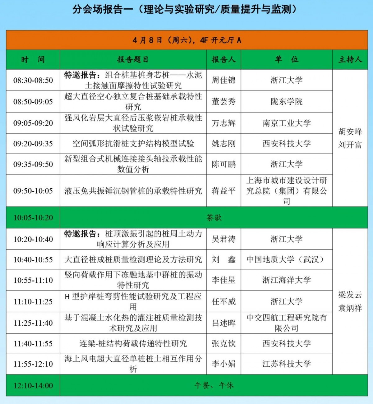 第十五届全国桩基工程学术会议定于2023年4月6-8日在浙江杭州召开,会议以“ 桩基技术创新发展”为主题,届时将邀请桩基工程领域的知名专家学者作特邀报告、大会报告、专题报告,展现新时代桩基工程领域的最新研究成果与工程应用技术。组委会热忱邀请本领域的专家、学者、工程技术人员、在校研究生积极参与,共同探讨与交流桩基工程领域最新成果和技术!