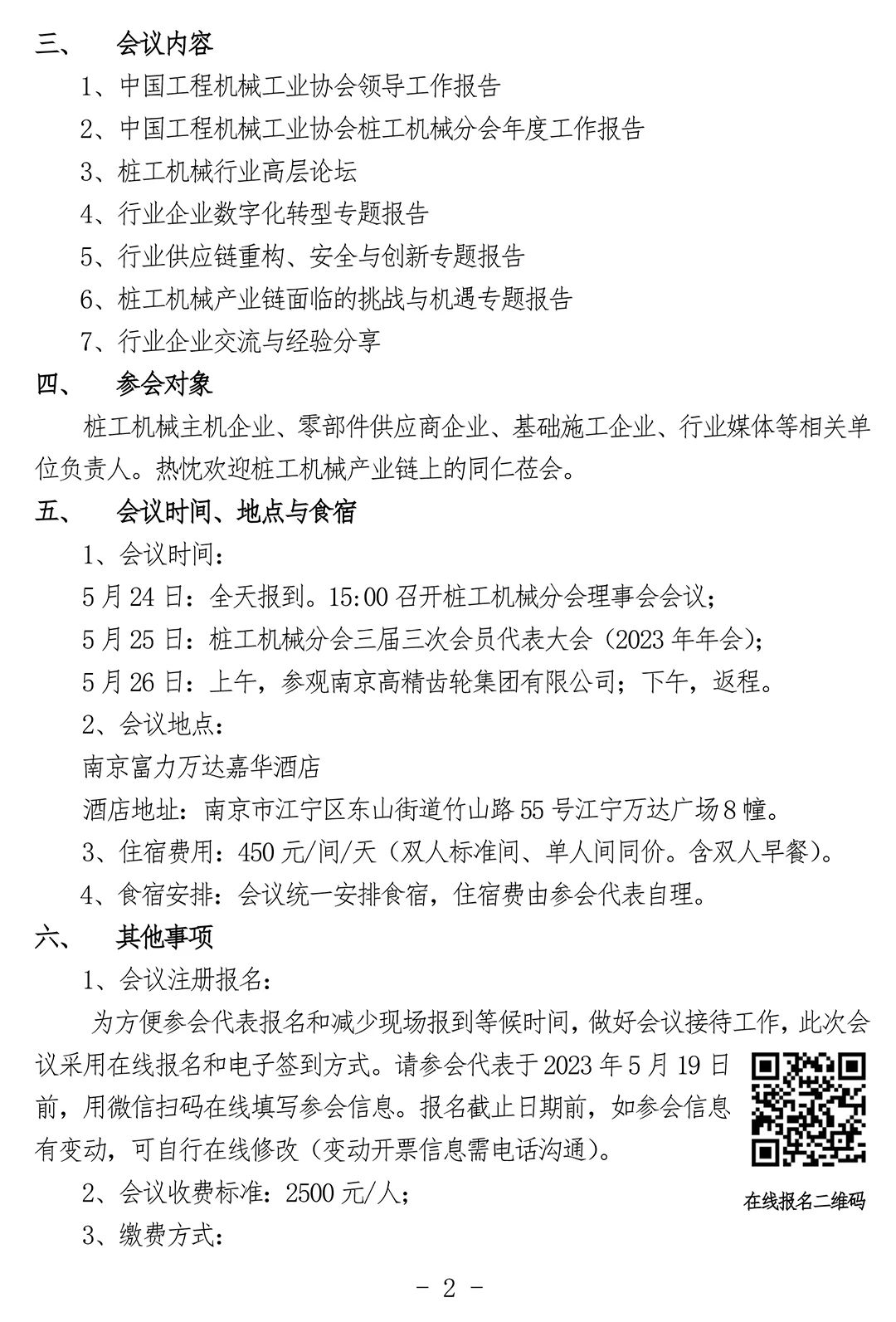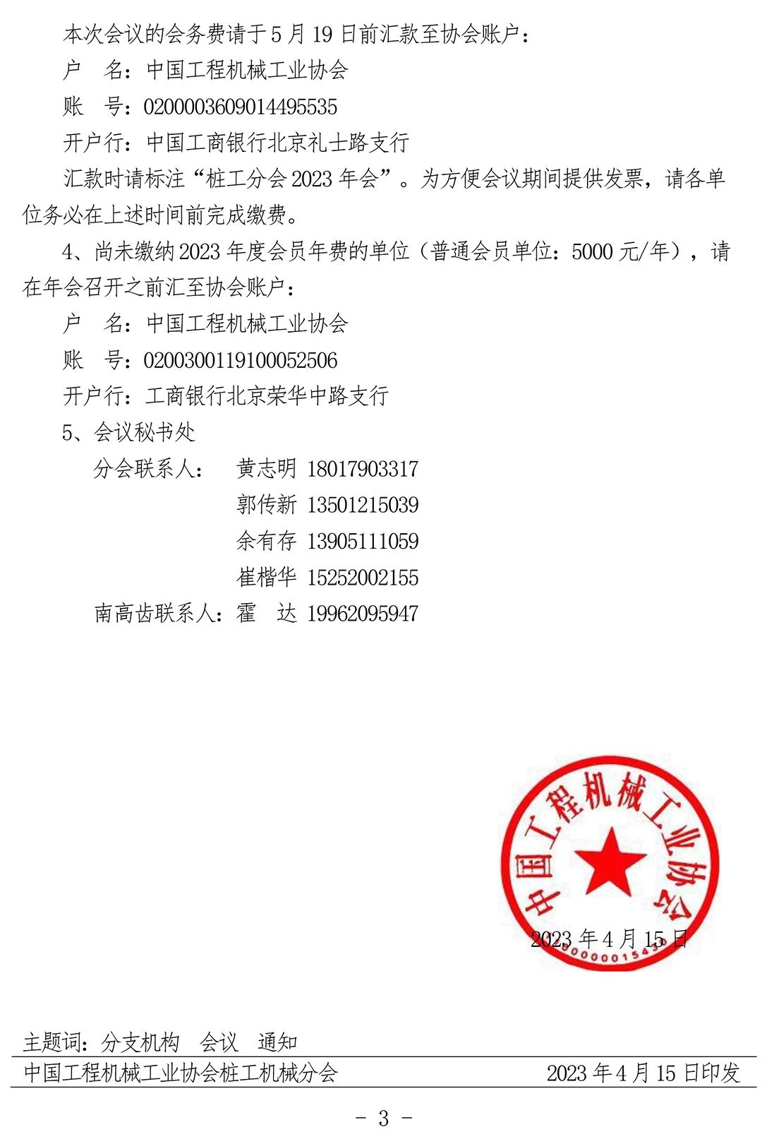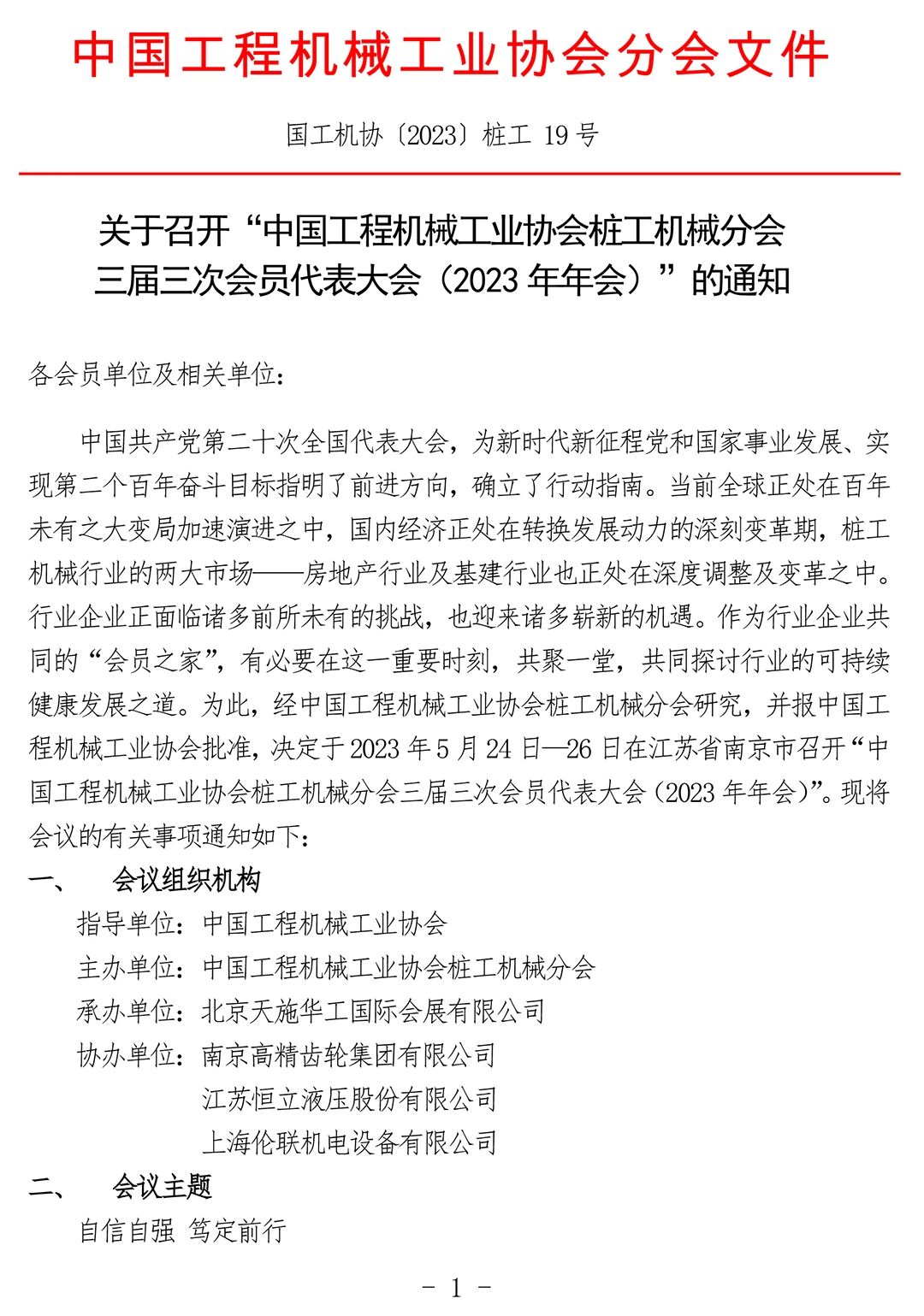 关于召开“中国工程机械工业协会桩工机械分会三届三次会员代表大会(2023年年会)的通知