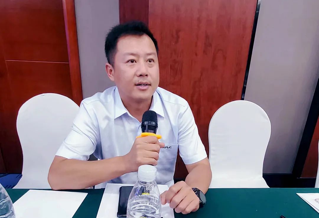 河南省沥青混凝土行业协会副会长、三一路机豫鄂分公司总经理欧阳超在座谈交流中发言