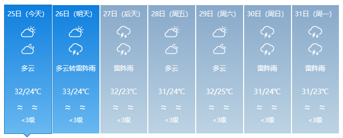 7月26-28日,北京天气情况如下(更新于7月25日),请注意天气变化,携带雨具。