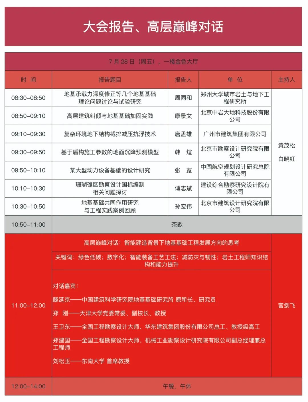 本次大会亮点纷呈,设有:黄熙龄地基基础工程论坛1讲、大会报告19个、高层嘉宾对话1场、中国建筑科学研究院有限公司70周年庆学术专场报告14个、分会场特邀报告6个、分会场专题报告30个,同期举办展览展示活动等,旨在交流近年来适应我国城镇化发展地基基础领域所取得的最新研究成果,针对该领域的未来需求及热点难点问题展开学术讨论。