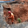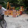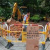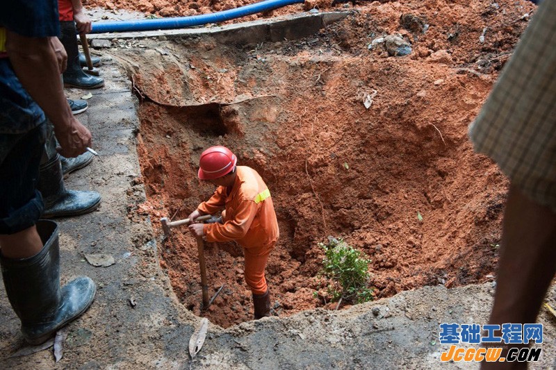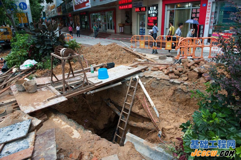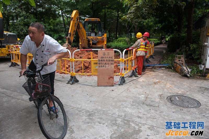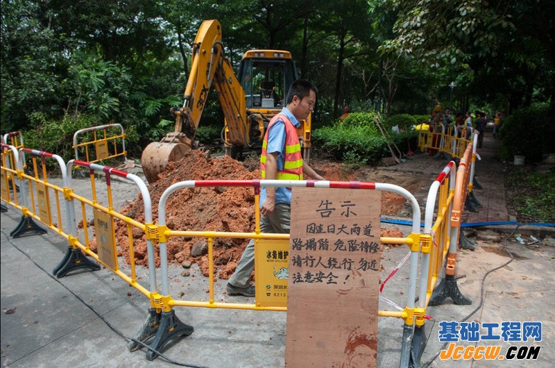 6月25日,在深圳市南山区缘来居小区门口,深圳水务的工作人员在抢修当天塌陷的坑。当日7时,深圳市南山区缘来居小区门口的人行道因为地下污水管道爆裂,突然塌陷出一个约3米深、1米宽的坑,途经的爷孙两人跌落坑中受伤。就在一天前,深圳罗湖区凤凰路与华丽路交叉口靠近人行道的绿化带因为同样的原因也发生了塌陷。今年以来,深圳已发生8起地陷事故,造成6人死亡,多人受伤。