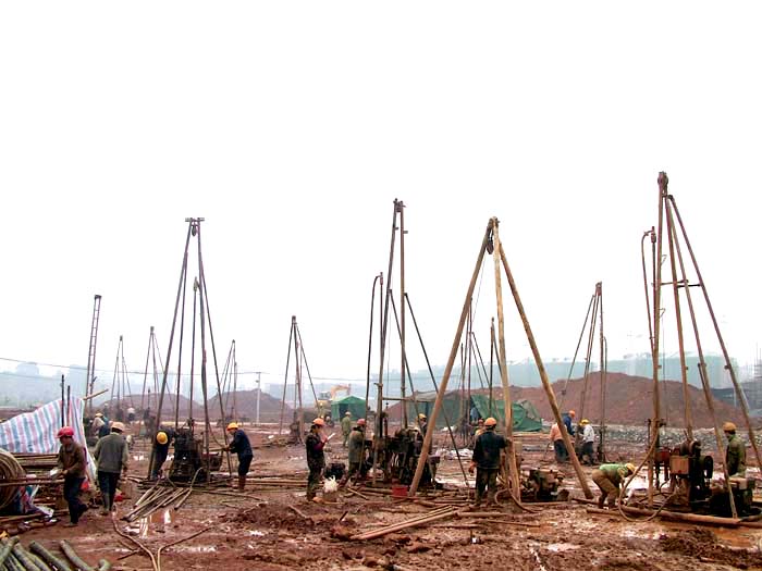 采用静力触探试验测试,使用原装的液压静力触探探头完成,并将采集的信息传至电脑上进行分析、整理。标准贯入的试验使用标准落锤自由落体法进行时,注意试验前做好清孔工作,保持锤击速率在2O次/rain左右。也可以采用动力触探法,该方法能有效确定风化基岩的物理力学指标。