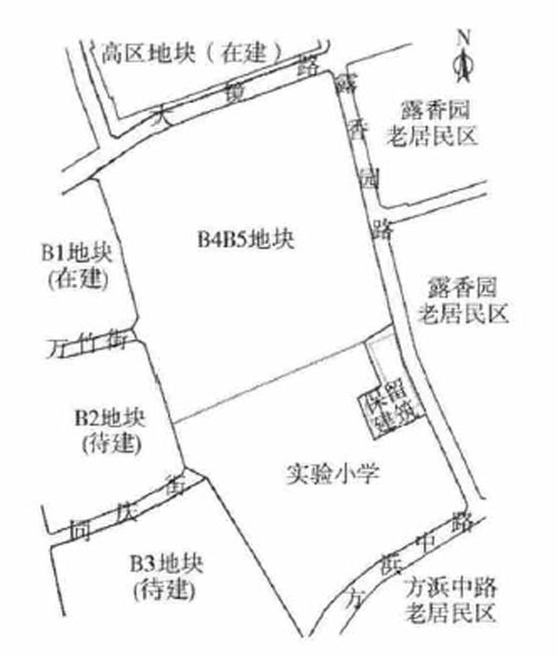 上海老城厢露香园路旧改地块商品房及配套公建项目一期(B4、B5地块及实验小学)位处上海市中心地段,地块坐落于南起方浜中路,东临露香园路,西靠青莲街,北至大境路四路环抱之内(图1)。