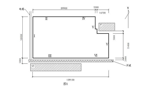 基坑南侧及西侧紧邻排水沟开挖,排水沟因年久失修,渗漏严重。南侧距已有建筑物约5.0m,该建筑物基础为条形基础。东北角距三层砖混建筑物约3.0m。