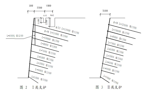 Ⅰ类支护:基坑西侧(图2); Ⅱ类支护:北侧西端66m(图3)