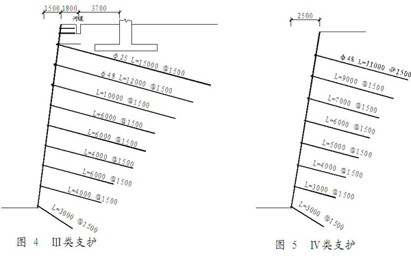 Ⅲ类支护:南侧西端66m(图4); Ⅳ类支护:北侧东端约25m(图5)