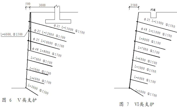 Ⅴ类支护:北东角及东侧(图6); Ⅵ类支护:南侧东端40m(图7)