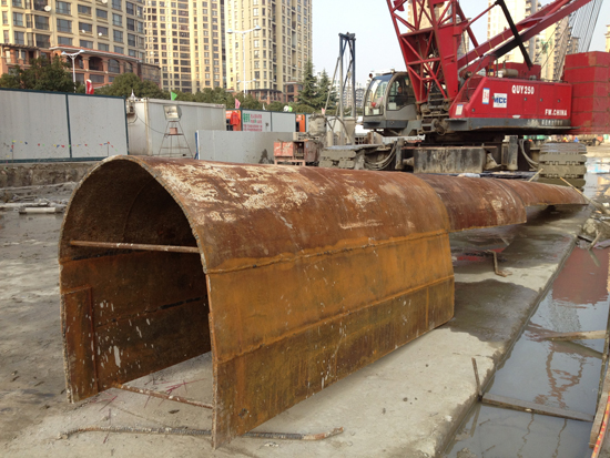 然而,250t吊车配合起吊未能完成剩余锁口管的顶拔,故最后放弃直接顶拔,采用其它的方案进行处理。