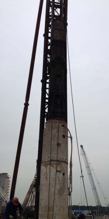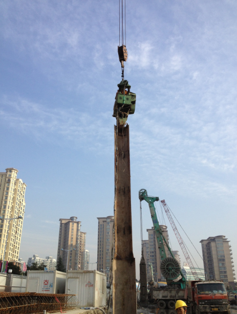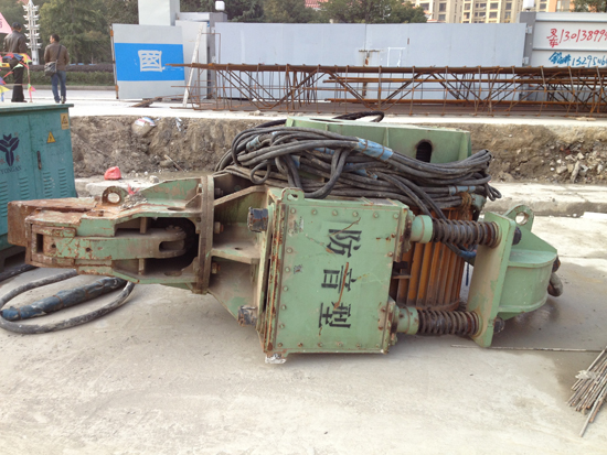 第二步:采用振动锤振动钢套管,慢慢切入,逐步剥离被埋锁口管;