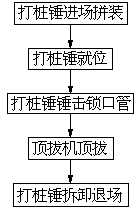 打桩锤处理原理:通过打桩锤重锤锤击被埋锁口管,促使锁口管与绕流混凝土脱离,待锁口管被锤下1~2m,锁口管松动后,使用250t履带吊配合顶拔机拉出被埋锁口管。