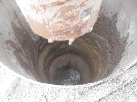 第一步:先使用小孔径岩石筒钻钻进,并配合小孔径捞砂斗清渣,反复配合钻进到设计终孔位置。