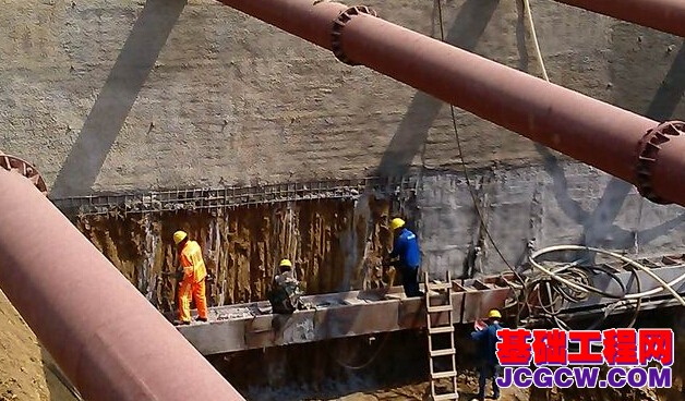 支撑结构由609mm钢管支撑、混凝土围檩、型钢立柱等所组成,每道支撑形成一个平面支承系统,以平衡由围檩所传递的水、土侧向压力。 本工程的钢支撑体系呈网格状分布,按照“先撑后挖”的原则,先开槽安装好钢支撑后再进行土方开挖。在施工中需特别注意:各个连接件的位置应正确,连接牢固、可靠、稳定。
