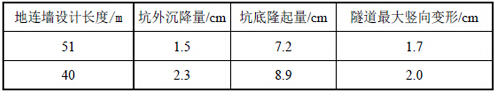 对比计算地下连续墙围护深度分别为51m和40m条件下,基坑施工对既有隧道结构的影响。