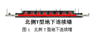 本工程基坑周边普遍采用1000mm厚“两墙合一”地下连续墙(柔性接头),针对北侧靠近重点保护建筑“明远楼”区域则采用1000mm厚T型地下连续墙。加强地下连续墙的刚度,避免在开挖过程中明远楼处土体位移导致对历史保护建筑物的破坏。