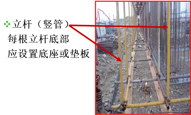 立杆(竖管)每根立杆底部应设置底座或垫板。