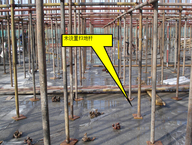 1)不设或少设扫地杆