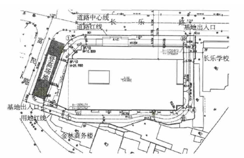 该项目基坑东侧边线与建筑红线之间的最小距离仅为4.2 m,与长乐中学之间的距离约为9.5 m;基坑南侧边线与建筑红线之间的最小距离仅为0.7 m,与金林商务楼之间的最小距离仅为1.7 m;基坑西侧边线与建筑红线之间的最小距离仅为1.2 m,与道路侧石之间的距离约为8.8 m;基坑北侧边线与建筑红线之间的距离约为2.4 m,与距道路侧石之间的距离约为5.2 m;现场临时变电站与建筑红线之间的最小距离仅为3.1 m。根据综合管线地形图数据,富民路与长乐路管线密集,最近管线与建筑红线之间的最小距离仅为2.2 m。