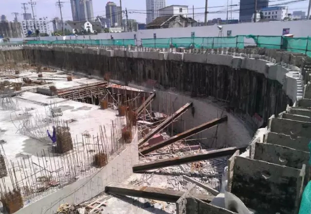 地下连续墙就是用专用设备沿着深基础或地下构筑周边采用泥浆护壁开挖出一条具有一定宽度与深度的沟槽,在槽内设置钢筋笼,采用导管法在泥浆中浇筑混凝土,筑成一单元墙段,依次顺序施工,以某种接头方法连接成的一道连续的地下钢筋混凝土墙,以便基坑开挖时防渗、挡土,作为邻近建筑物基础的支护以及直接成为承受直接荷载的基础结构的一部分。地下连续墙的优点是对邻近建筑物和地下管线的影响较小,施工时无噪音、无振动,属低公害的施工方法。