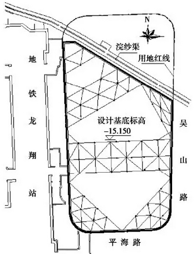 (5)基坑周边距离道路、管线以及在建或已建的建筑物很近,尤其是北侧紧贴浣纱渠、西侧与在建的地铁车站距离很近,对变形和稳定的控制要求很高。