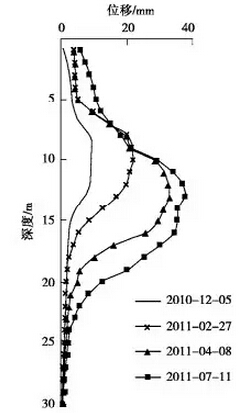 图7 CX4的土体侧向位移曲线