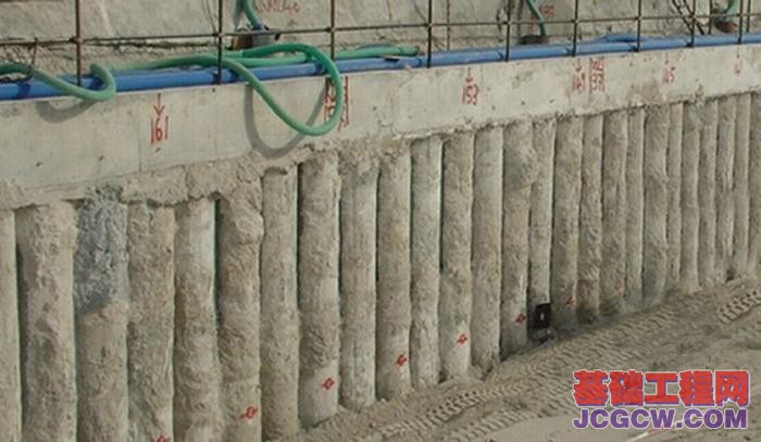 2、排桩支护:排桩支护是指将柱列式间隔布置的钢筋混凝土挖孔、钻(冲)孔灌注桩作为主要挡土结构的一种支护形式。柱列式间隔布置包括桩与桩之间有一定净距的疏排布置形式和桩与桩相切的密排布置形式。柱列式灌注桩作为挡土围护结构有很好的刚度,但各桩之间的联系差必须在桩顶浇注较大截面的钢筋混凝土帽梁加以可靠联接。