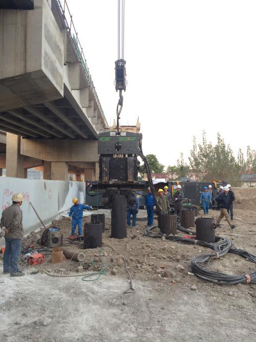 上海将建设北横通道,扩大自己的城市高架路网。北横通道穿越密集城市化区域,要求施工方采用对环境冲击(比如:撞击噪音、振动、膨润土处理,施工速度等)最小的地基施工方式。客户一直在寻找能够解决这些问题的新施工方法,最终在网络上找到了行业领先的ICE公司的免共振液压高频振动锤。