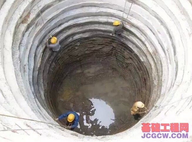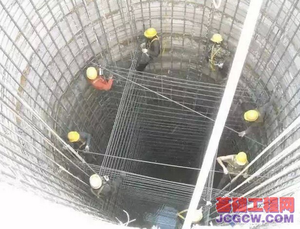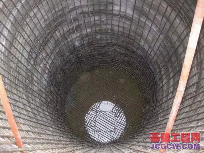 本工程房建大楼工程,102层(地下4层)。工程最大桩径6100mm,桩长最浅10.2m,最深33.5m。 灌注桩采用钢筋混凝土护壁,护壁强度C25(掺早强剂)双层配筋,护壁是双层双向14钢筋,护壁厚度最厚处为500,桩芯混凝土强度C50。