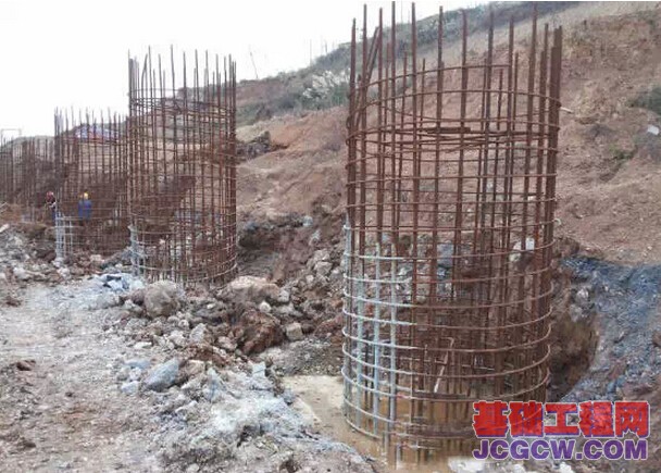 护坡桩往往都是大直径,依靠大截面桩身提供侧向抗滑力,因此也要求桩身穿越稳定地层,桩端嵌固在安全深度范围之内,以此提供足够反力。本工程案例中的护坡桩最大桩径2.2米,深度16米,入泥质灰岩6米左右。