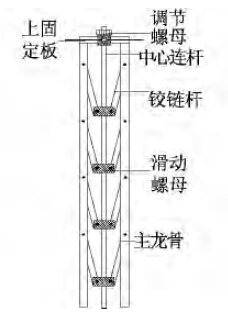 在墙板模板面板就位后,安装龙骨支撑系统。由于该系统单片质量较轻,采用人工下吊安装或人工安装机械配合均可,操作简便。安装剪刀型支撑机构和对拉丝杆并校正模板,校正模板后旋转机构丝杆固定顶撑槽钢龙骨骨架到位。重点控制以下几点。