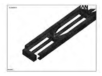 为了分析支撑系统局部的应力分布情况和力学行为,本文采用实体建模的方式,如图2所示。在本模型中,槽钢两侧承受前文所述的线性荷载和均布荷载的组合荷载,边界条件为底边固接。考虑两侧[80承受750mm左右的侧压力,故ANSYS有限元软件中输入的侧向压力荷载为:当h<2m时,Q1=(1.2×h×25+1.4×4)×0.75/80=(0.28h+0.052);当h≥2m时,Q2=(1.2×50+1.4×4)×0.75/80=0.615N/mm2。