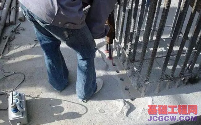 案例:设计变更,柱脚加大,柱基按原设计图已完成浇筑,需另外植入插筋。