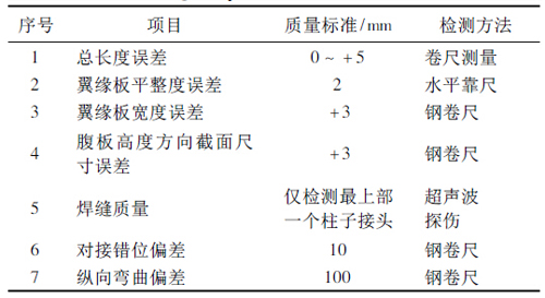 表1 钢柱成型质量标准