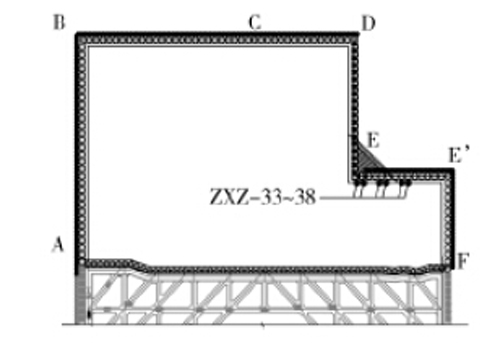如图5所示,Ⅲ区基坑止水帷幕AB、BD及EE’段为φ800mm@650mm高压旋喷桩,DE段高压旋喷桩位于支护桩间。高压旋喷桩长为6m,即基坑底上下各3m设置。