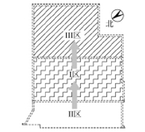 结合Ⅲ区基坑内支撑布置情况,将该区基坑分为2个区,即为Ⅲ-A区、Ⅲ-B区(图12)。