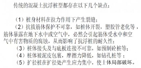 为了建筑物的安全,目前一般采用抗浮桩和增加建筑物配重等形式来解决抗浮问题,其中的抗浮桩在建筑工程中的使用比较普遍。