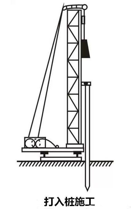 打桩机具主要包括桩锤、桩架和动力装置三个部分。