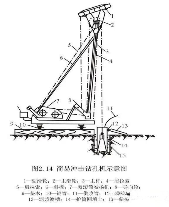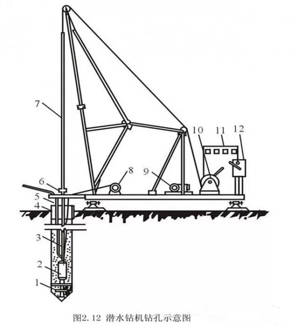 成孔机械有潜水钻机、冲击钻机、冲抓锥等。