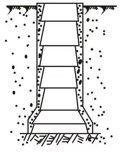 即分段开挖、分段浇筑混凝土护壁,既能防止孔壁坍塌,又能起到防水作用。
