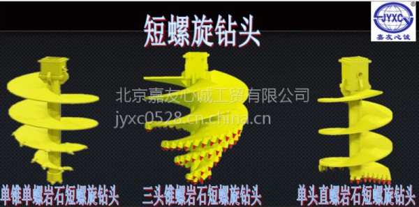 钻进硬地层的嵌岩短螺旋钻头结构由法兰、芯轴管、主螺旋叶片(导向螺片)和引导螺旋叶片(锥片)构成。常用的嵌岩短螺旋钻头在结构形式又可分为单锥单螺短螺旋钻头和双锥单螺短螺旋旋钻头,双锥双螺短螺旋钻头。