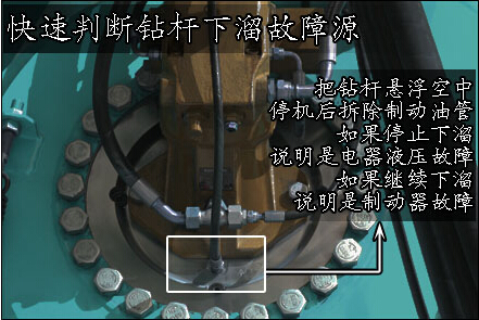 把钻杆悬浮空中,停机后拆除制动油管,如果停止下溜 说明是电器液压故障;如果继续下溜说明是制动器故障。