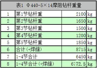2.2、重度带杆 可作如下分析。以22吨米钻机常配置的钻杆φ440-5×14摩阻杆为例,其各节杆的重量参见表2.1。
